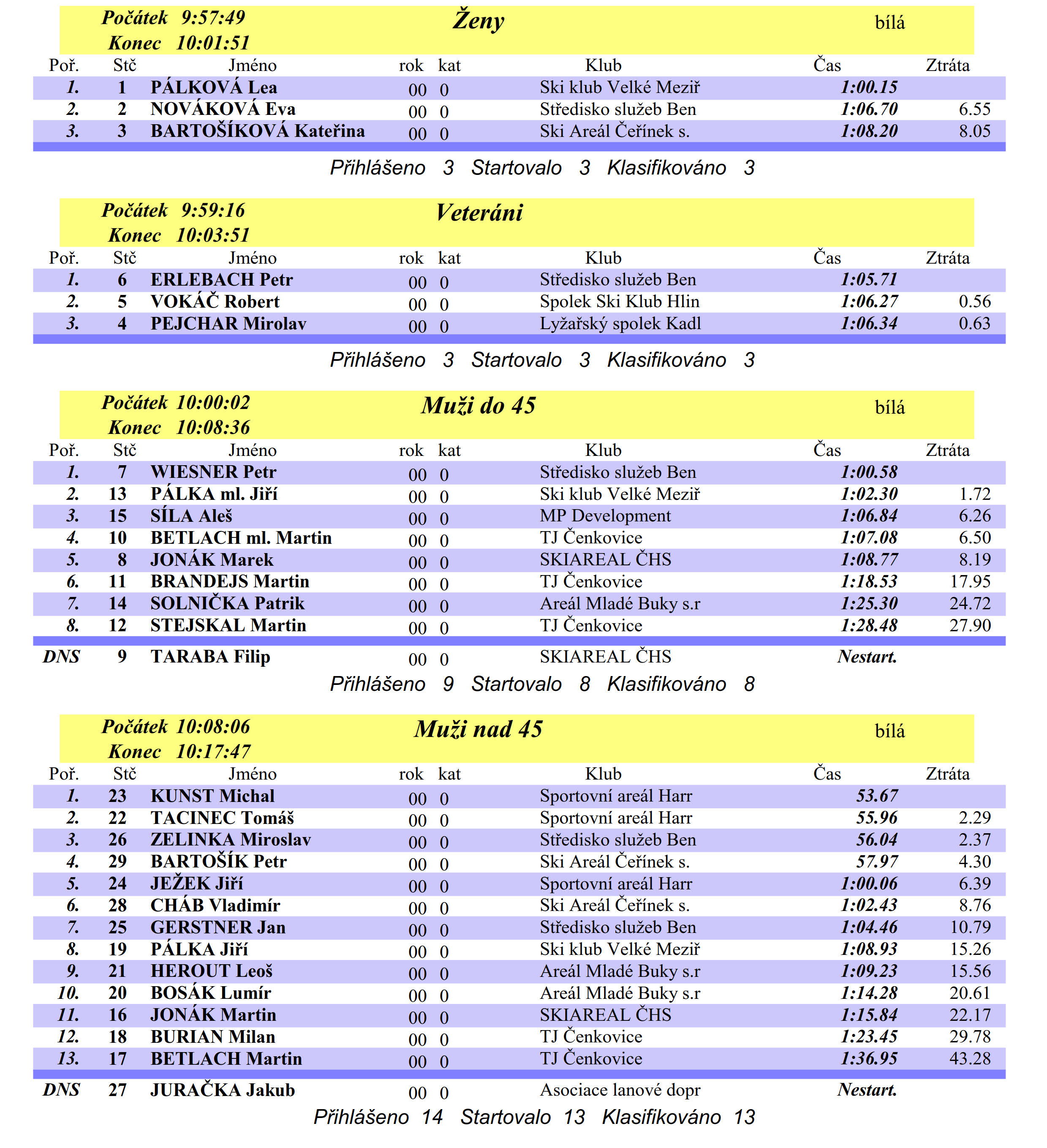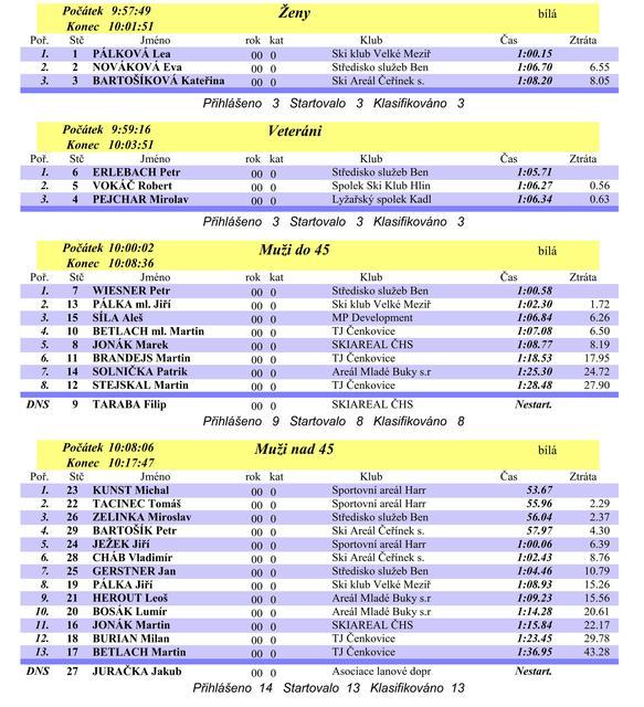 Výsledky Oficiálního MČR lanovkářů a vlekařů v superobřím slalomu.
