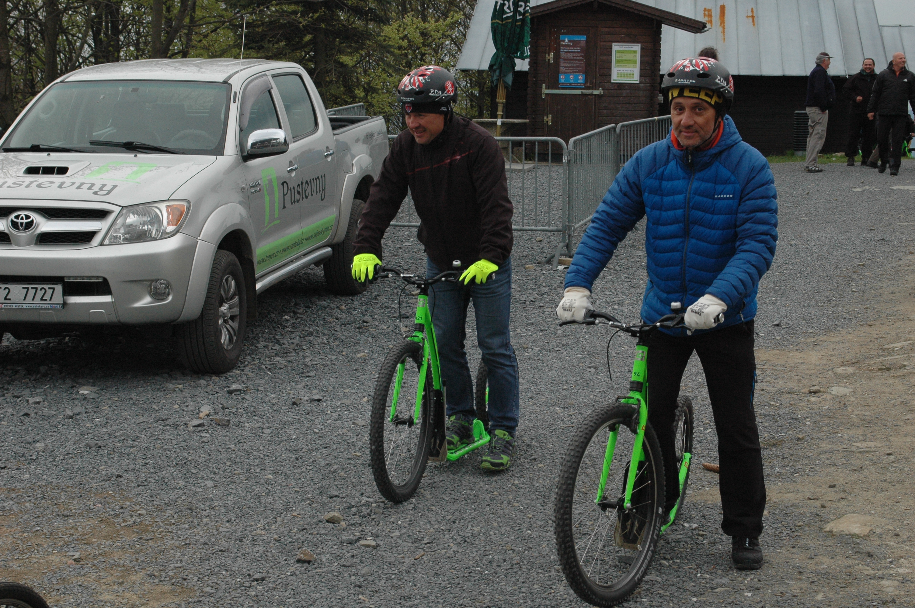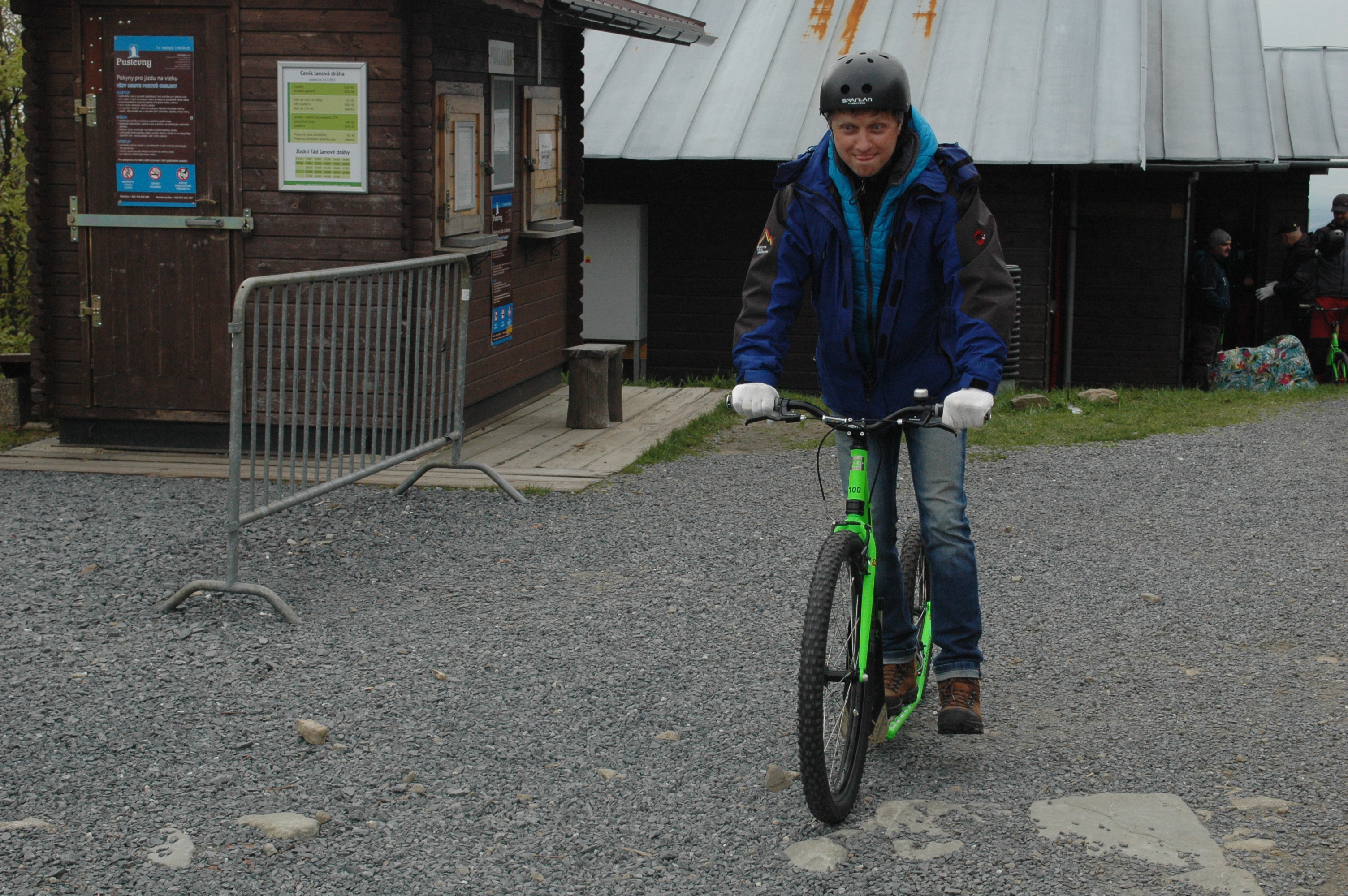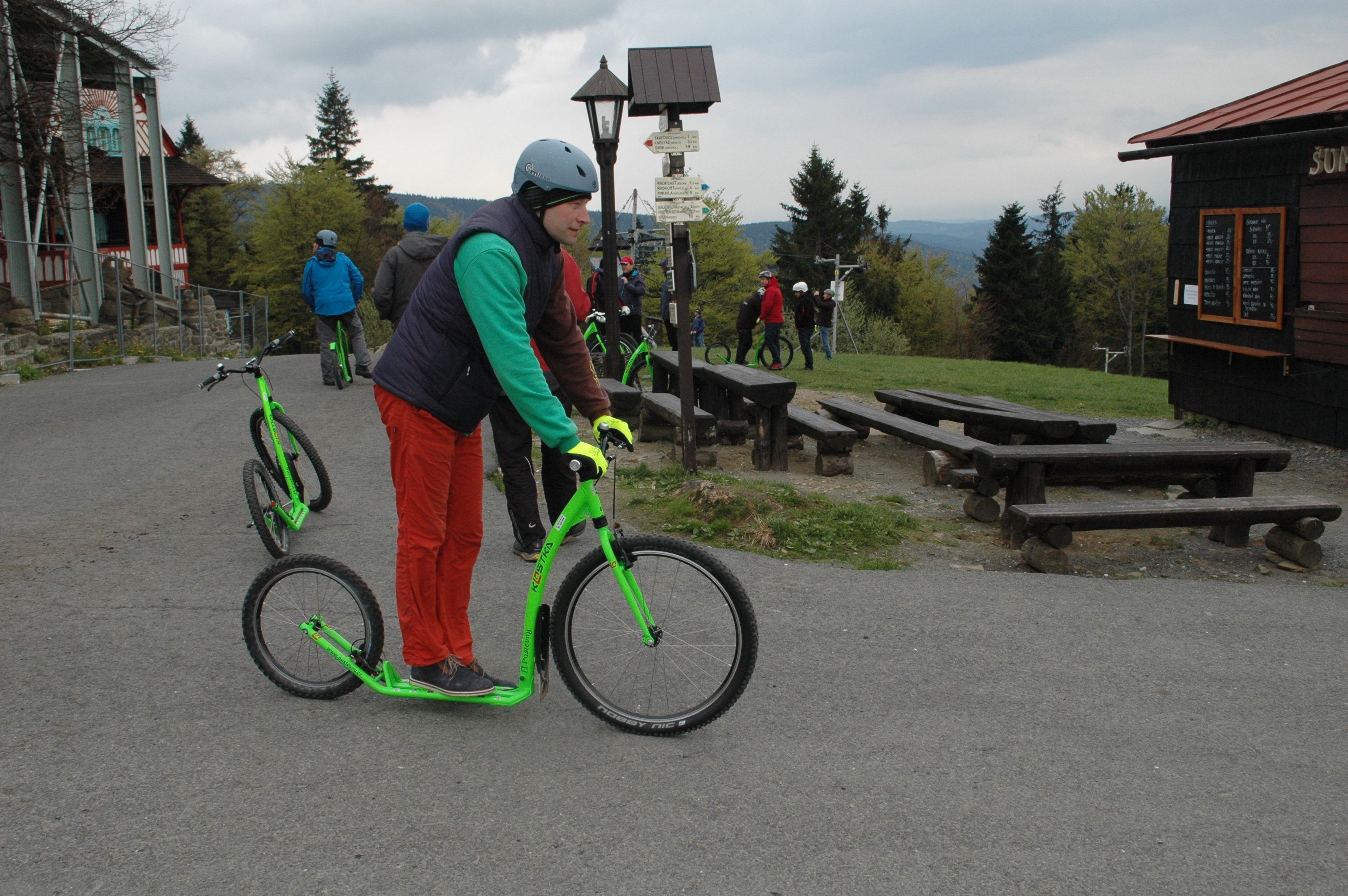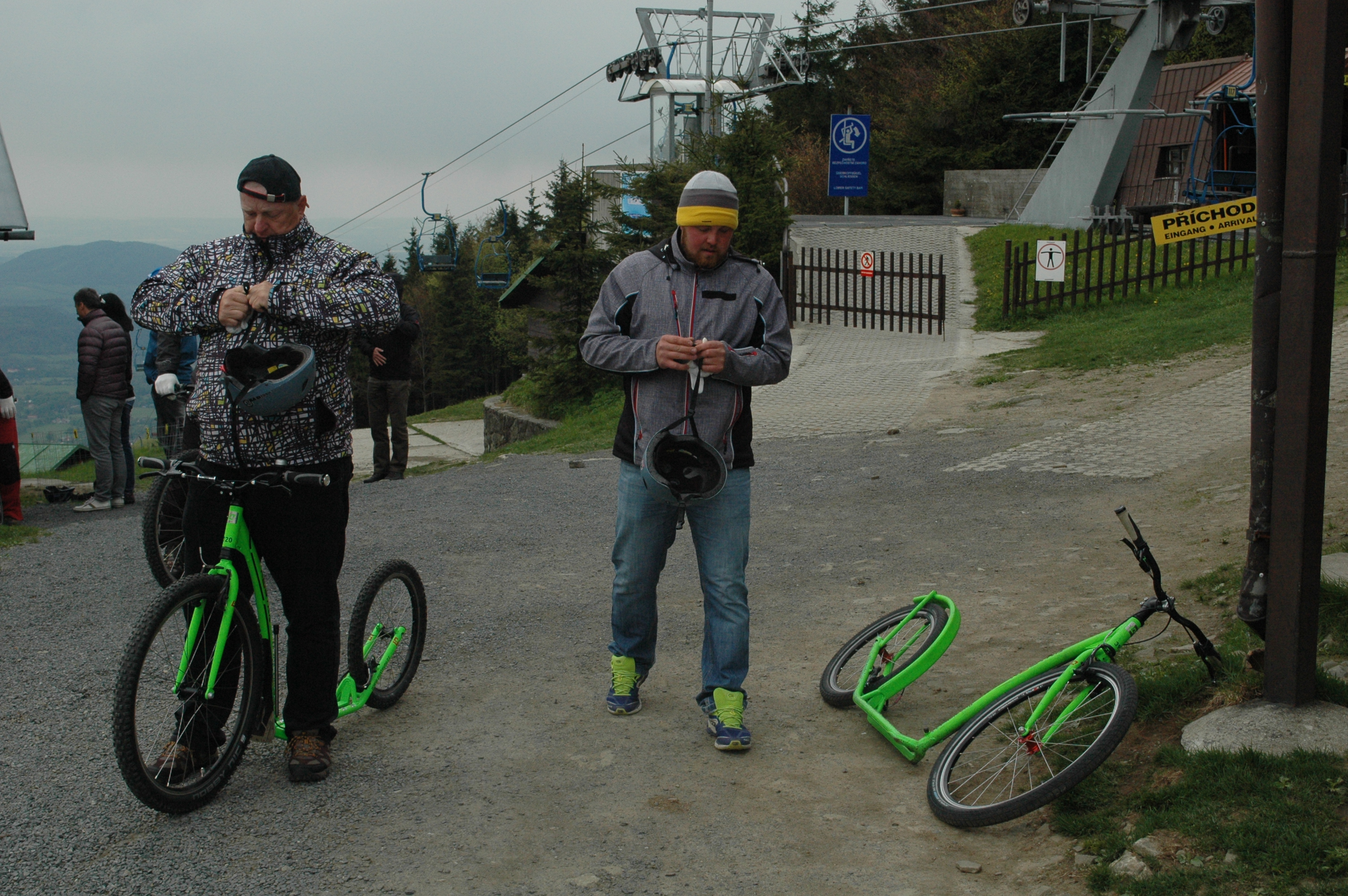 Jako součást exkurze na lanovou dráhu Pustevny v rámci školení vedoucích provozu lanových drah a jejich zástupců měli účastníci možnost užít si sjezd do Trojanovic na koloběžkách.