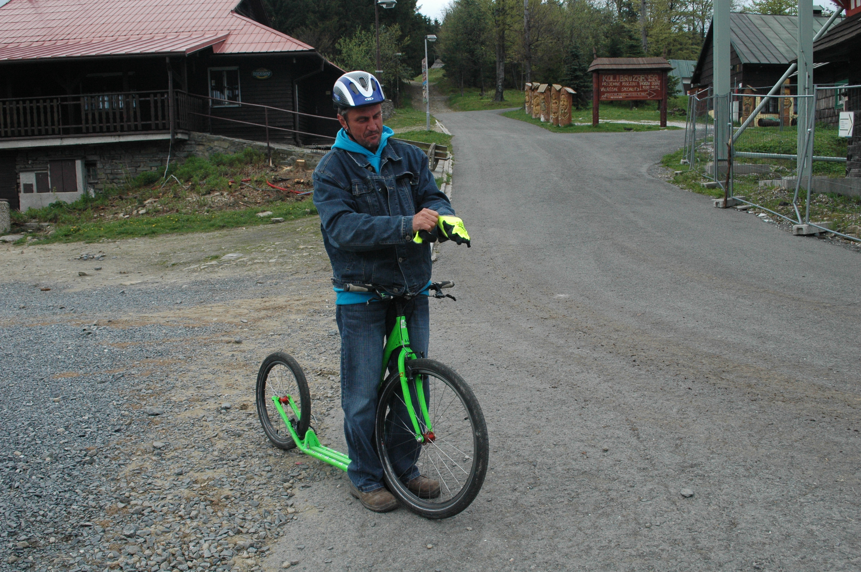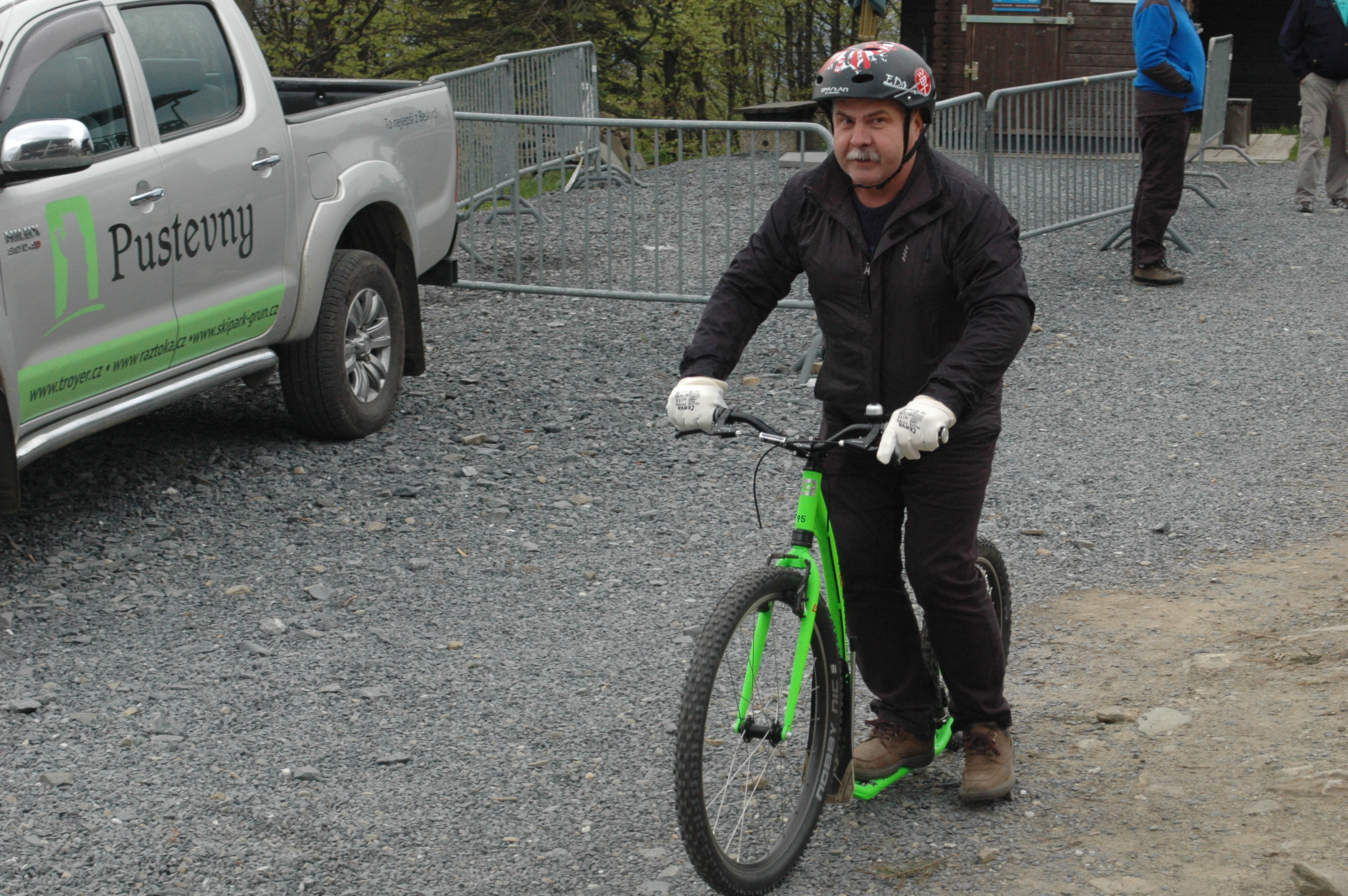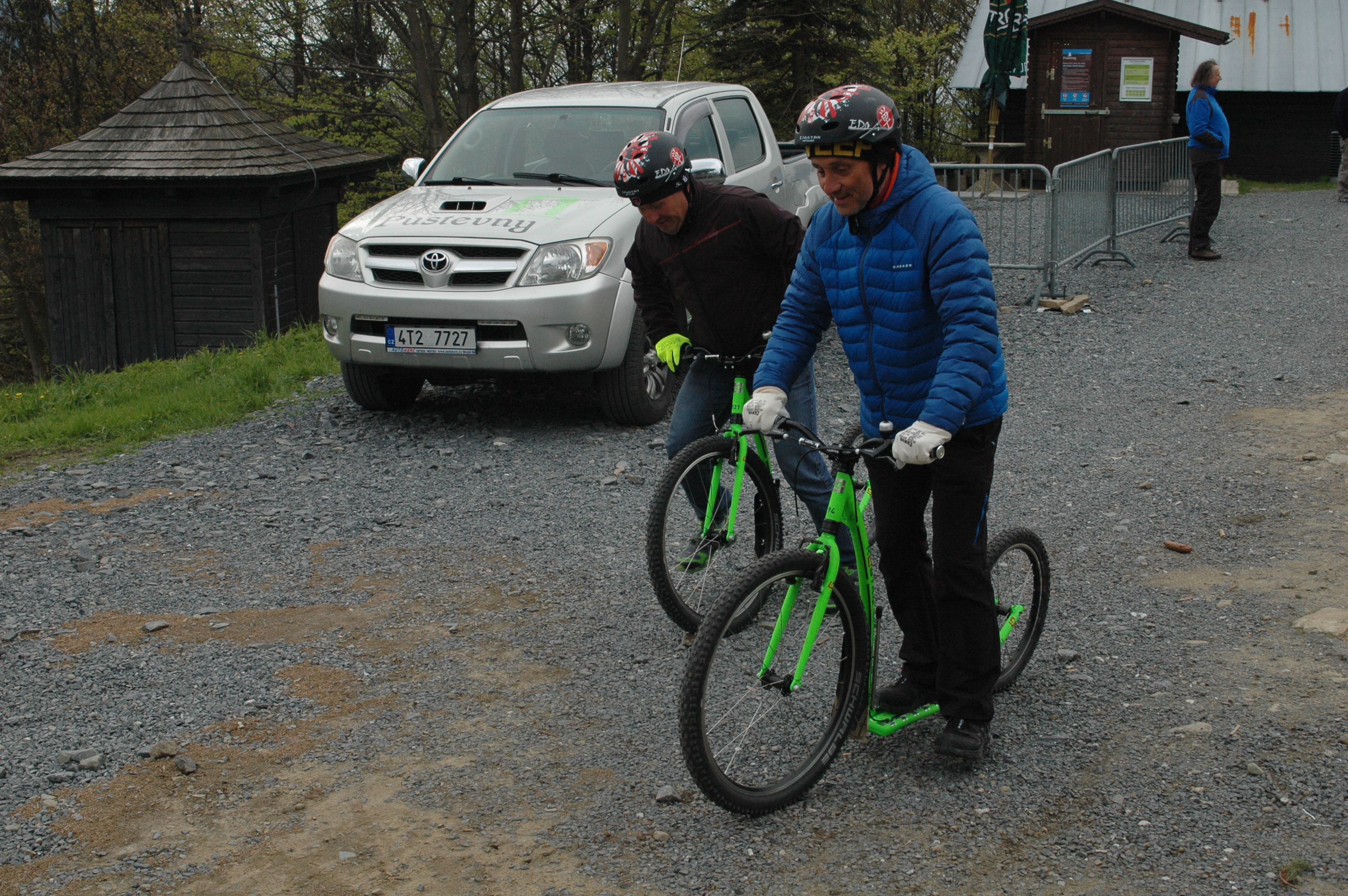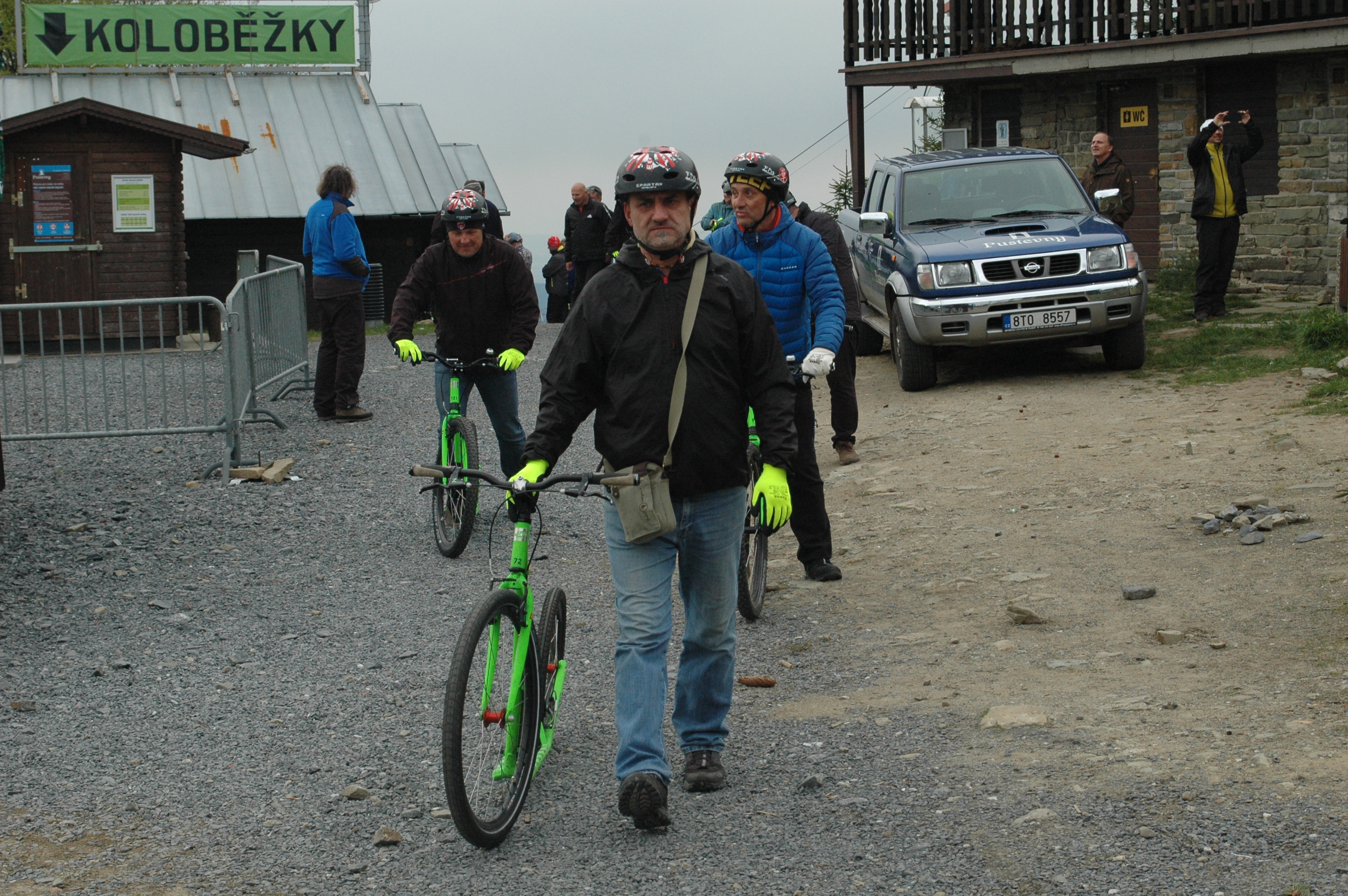Jako součást exkurze na lanovou dráhu Pustevny v rámci školení vedoucích provozu lanových drah a jejich zástupců měli účastníci možnost užít si sjezd do Trojanovic na koloběžkách.