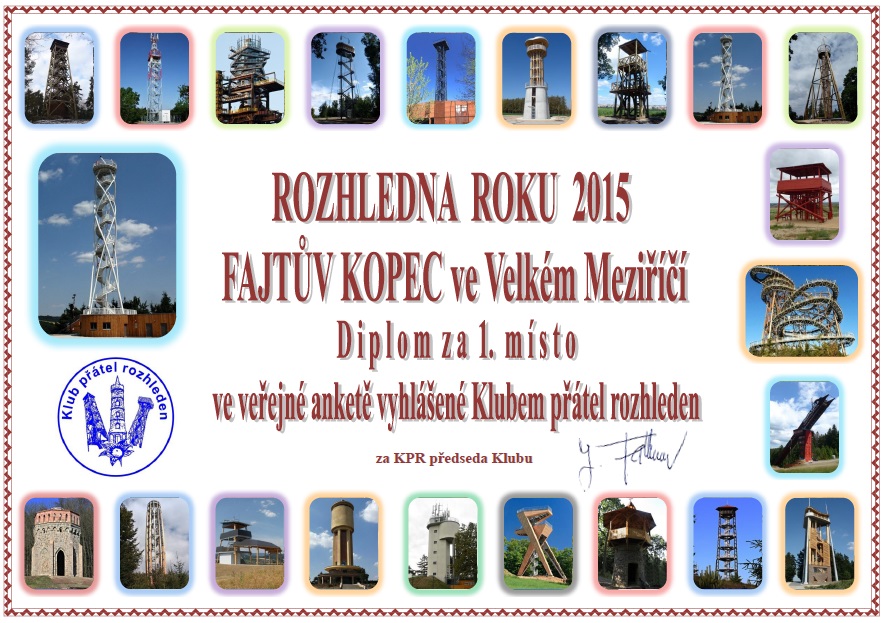 Fajtův Kopec ve Velkém Meziříčí získal ocenění za rozhlednu roku 2015. Gratulujeme!