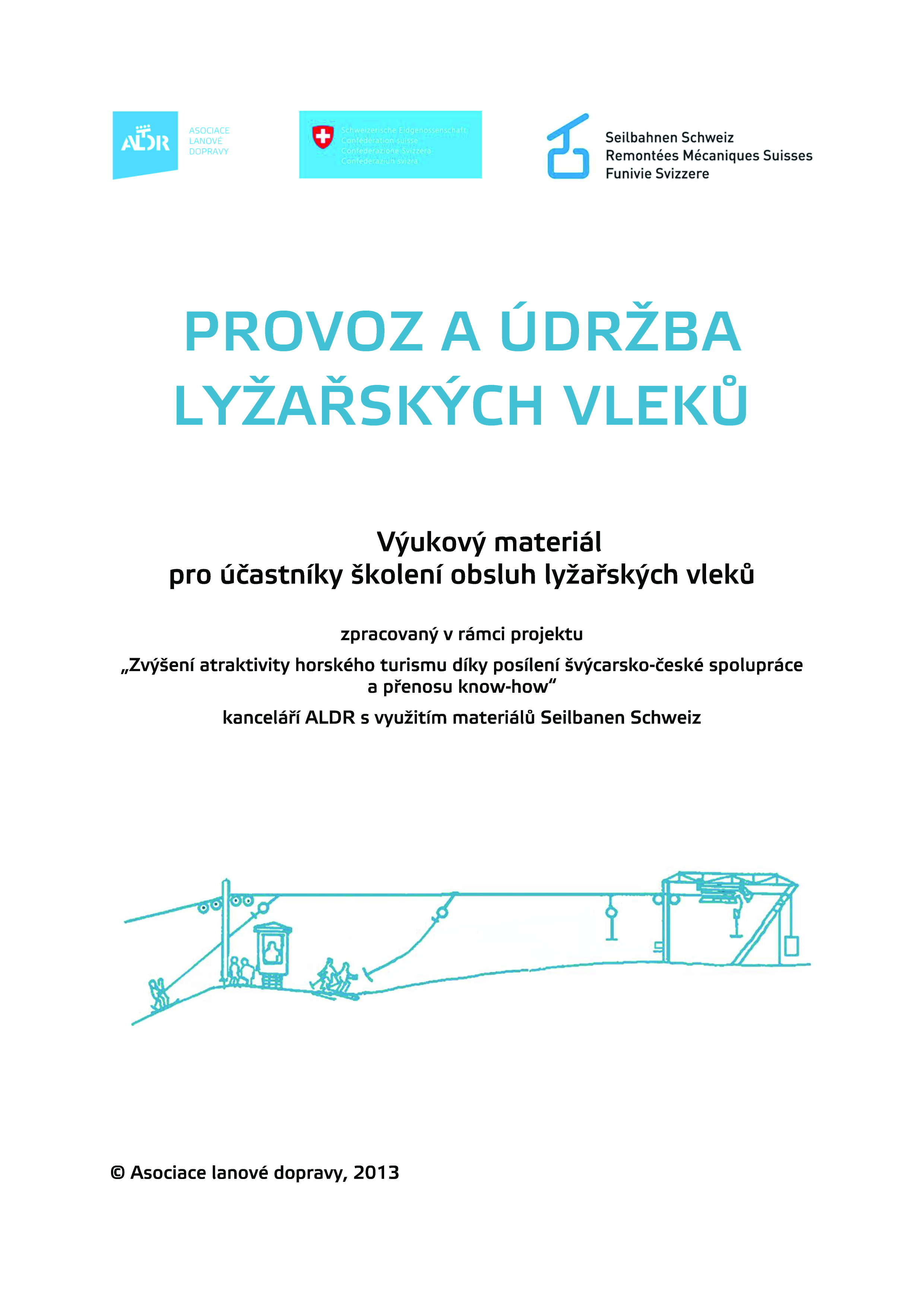 V roce 2013 vydala ALDR první výukový materiál. Jedná se o zhruba padesátistránková skripta s názvem "Provoz a údržba lyžařských vleků". Jako základ skript byly využity informace z materiálů, které nám poskytl projektový partner - švýcarská lanovkářská asociace Seilbahnen Schweiz. Tyto byly doplněny o údaje z českých technických norem, předpisů týkajících se provozu lyžařských vleků apod.