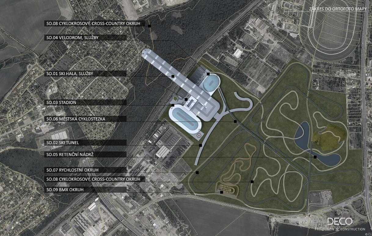 Podle územního plánu jsou vymezené pozemky určené pro sportovní účely, ale projekt samotný má ještě dlouhou cestu k samotné realizaci.