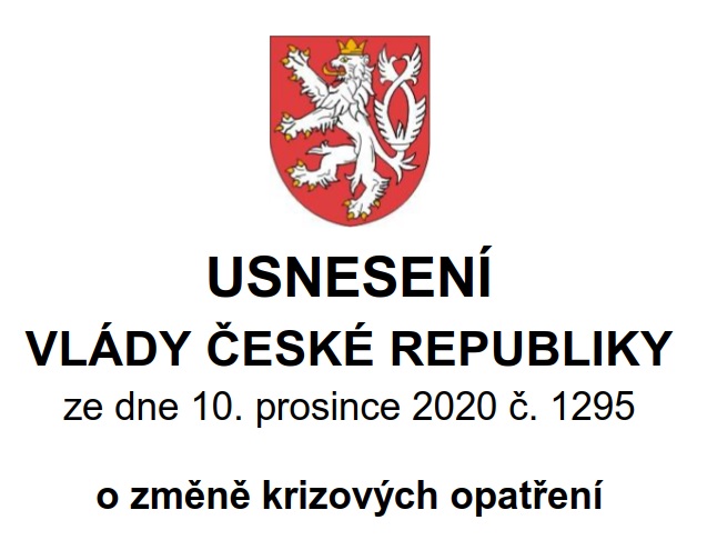 Přinášíme Vám USNESENÍ VLÁDY ČESKÉ REPUBLIKY ze dne 10. prosince 2020 č. 1295 o přijetí krizového opatření.