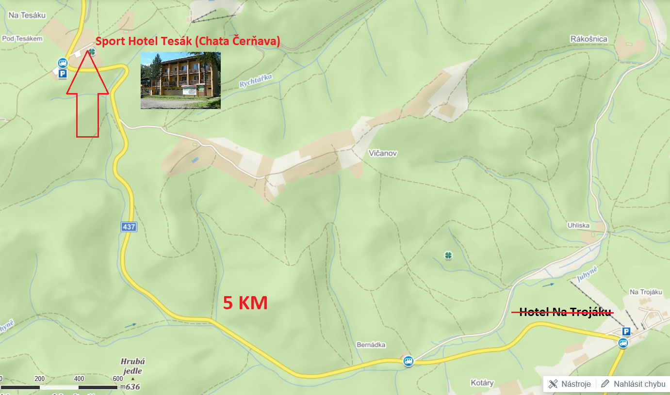 JE TO POUZE 5 KM OD TROJÁKU, kde mělo být školení původně.