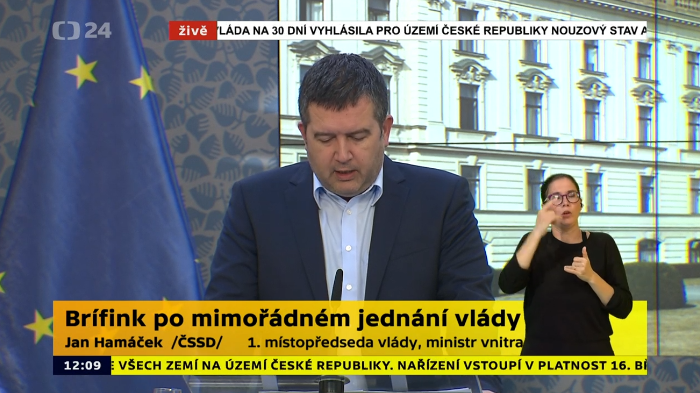 Záznam tiskové konference k vyhlášení nouzového stavu v ČR