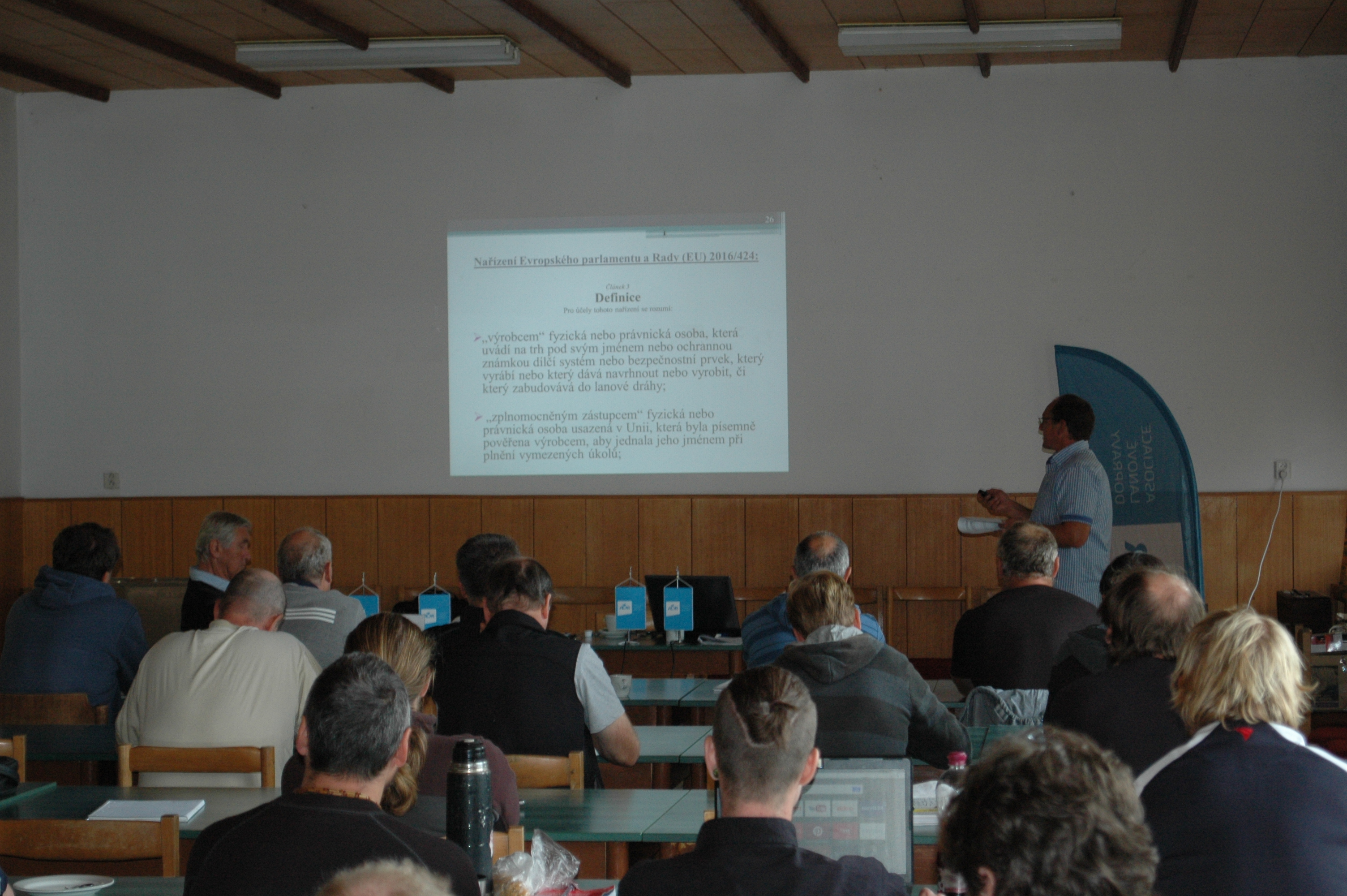 Dnešní dopoledne ještě patří odborným přednáškám z oblasti elektrotechnických kvalifikací a Nařízení Evropského parlamentu a Rady EU. Letos nově rozšířil tým přednášejících také PhDr. Ing. Pavel Kejha - vedoucí provozu lanové dráhy Petřín.