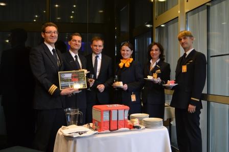 Generální ředitel hotelu NH Prague, pan Petr Nešpůrek, MBA., se svým týmem popřáli šťastné jubilejní posádce - a to v pravém slova smyslu. Cestujícími byla posádka letecké společnosti Lufthansa. Třímilióntá jízda se slavila dortem ve tvaru lanovky a sektem. Překvapení výherci získali certifikát a kapitánovi předal pan Nešpůrek také poukazy na večeři do restaurace Il Giardino.