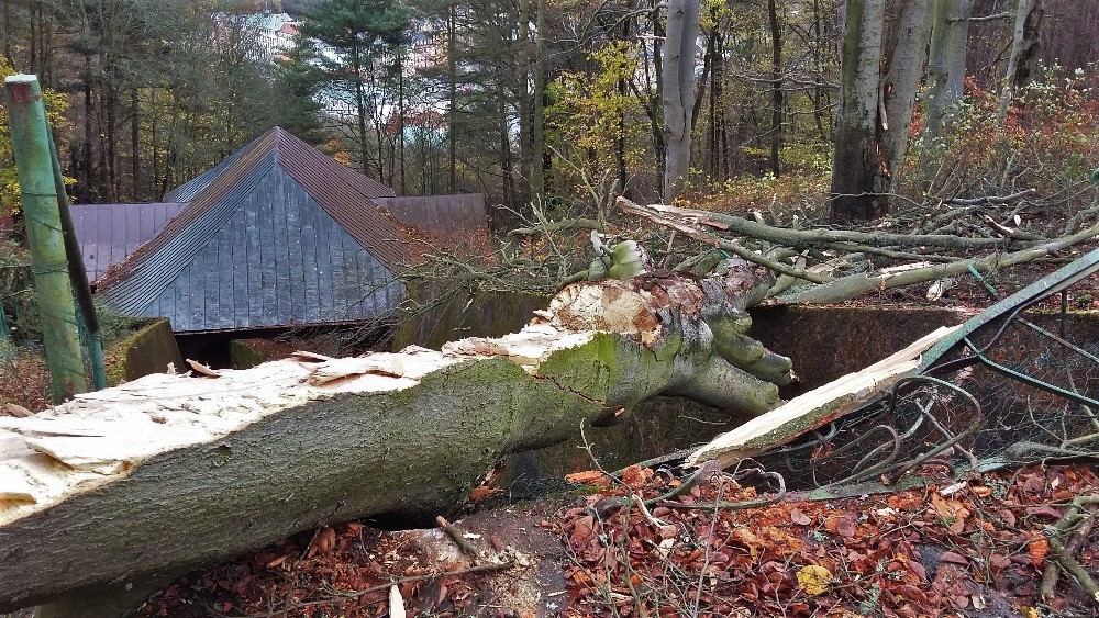 Spadané stromy poškodily lanovky i část lanového centra také v areálu na Plešivci na Karlovarsku. Tam se zatím škody nepodařilo vyčíslit. I v tomto areálu chtějí jeho provozovatelé stihnout začátek lyžařské sezóny. Mimo provoz je od neděle také Trail park se sjezdovými stezkami pro koloběžky a horská kola. Na stezkách leží množství polomů. Odstraňování následků vichřice v regionu komplikuje i několik stále ještě uzavřených silnic.